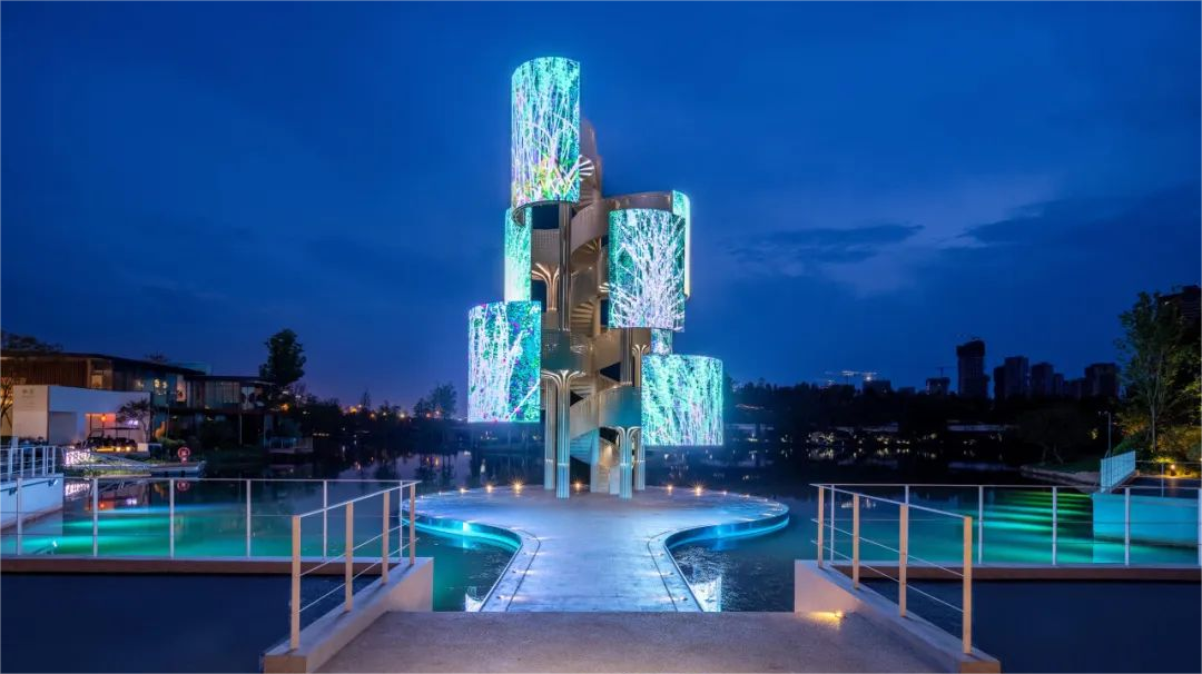 位于成都的麓湖水城是中國獨特的陸生生態基底轉為湖泊生態基底的成功案例,全球首座水上多媒體美術館——生命塔就位于這里。利亞德助力打造的生命塔,讓麓湖不斷拓寬城市藝術表達的邊界和維度,也讓藝術的無限可能跨入生活的無限可能。